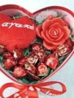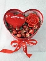 I love you heart candle red scented rose and praline, cherry and liqueur chocolates cherry and liquer
