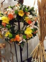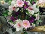 Garland with moss and a variety of seasonal flowers