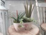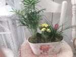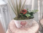 Small plants in a vintage container